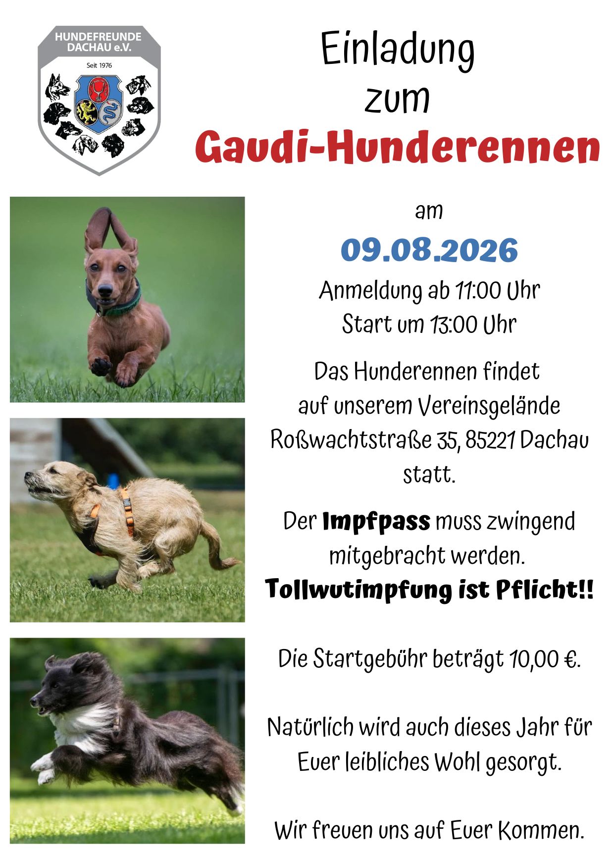 Unser Gaudi-Hunderennen hat schon seit Jahrzehnten Tradition. Es findet immer anlässlich des Dachauer Volksfestes statt.